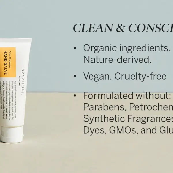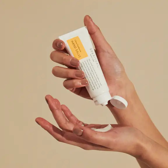 This Hand Salve, formulated with ancient healing ingredients including Marula Oil, Shea Butter, and Honeybush Extract moisturizes, softens dry skin and provides a breathable layer of protection, while the rejuvenating scent elevates the senses for a spa like experience.