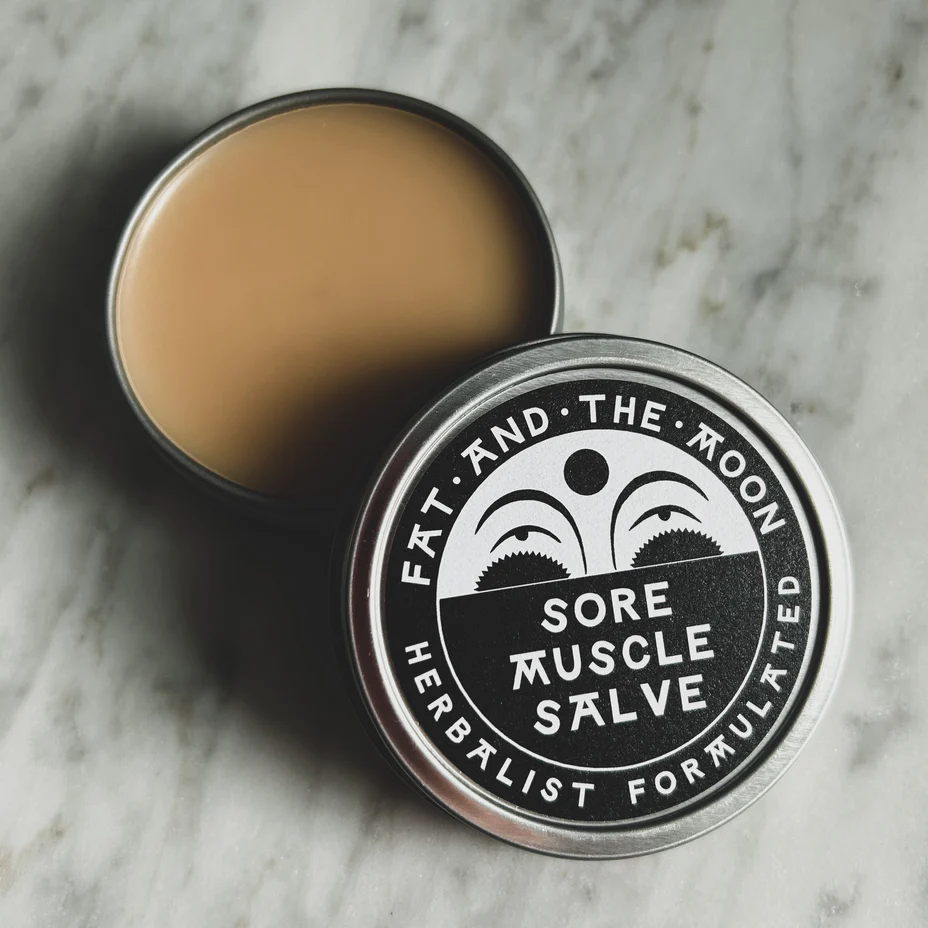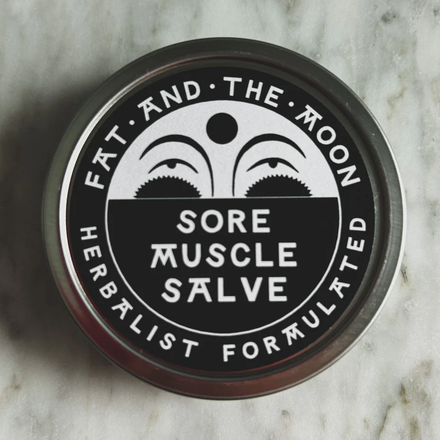 Fat and the Moon’s Sore Muscle Salve employs the relaxing properties of Tobacco and the warming properties of Cayenne to care for a taxed bod. The earthy smell of Tobacco is nicely complemented by the grassy aroma of Vetiver essential oil. Clove essential oil adds even more warmth to the salve.