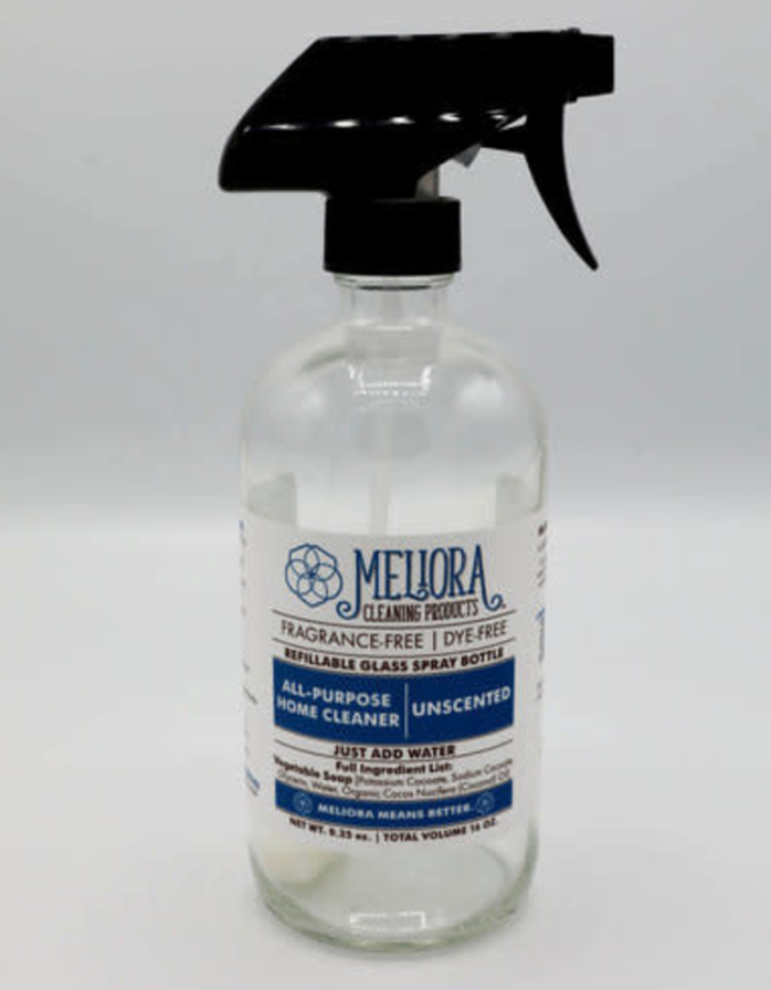 Dye, preservative, palm-oil, cruelty and fragrance free, Meliora all purpose cleaner is truly a one-stop solution for cleaning the hard surfaces in your home. Purchase the bottle and one tab together or the refill tabs to add to any 16oz bottle of your choice.