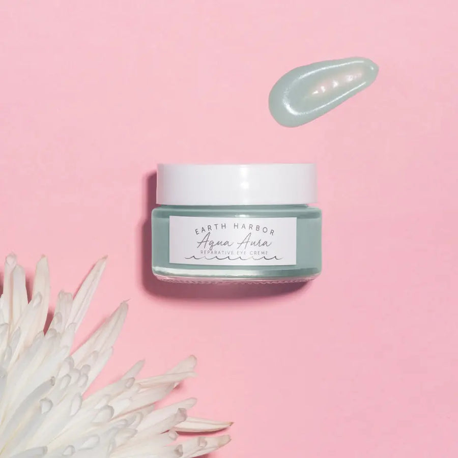 Inspired by the iridescent blue-green crystal known for healing and strengthening, AQUA AURA Reparative Eye Creme is restorative and awakening. Featuring a brightening + hydrating combination of Seaweed Collagen, Blue Tansy, potent antioxidants, replenishing plant oils and soothing actives for an eye area that looks firmer and feels stronger. Formulated with a powerhouse of botanicals to reduce the appearance of fine lines, wrinkles, dark circles, puffiness and sun damage under and around the eyes. The result is a rested, more youthful glow.