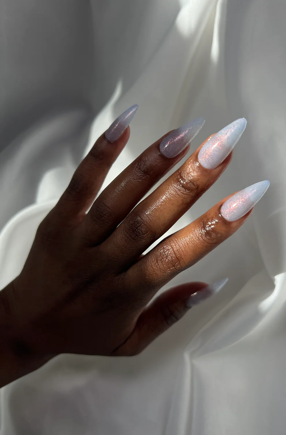 This polish has micro-chrome pink/orange/gold shifting flakes and subtle micro silver holo glitter.