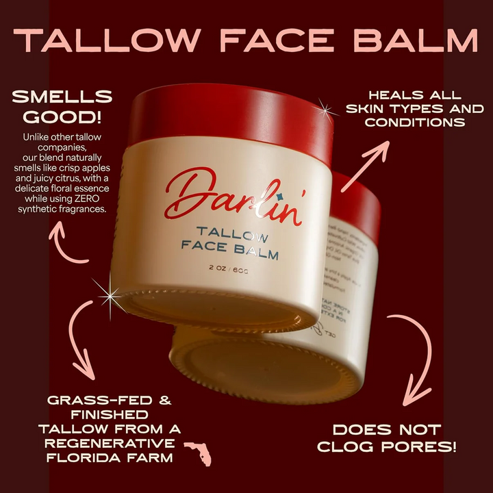 Elevate your skincare routine with our best-selling Tallow Face Balm. Crafted with grass-fed beef tallow, jojoba oil, and prickly pear oil, it deeply hydrates and revitalizes your skin. The blend of blue tansy and neroli essential oils soothes and calms, leaving your skin soft and radiant. Perfect for daily use, this tallow skincare product embodies western charm with luxurious, synthetic-free ingredients. Experience the benefits of beef tallow for skincare and discover why tallow for skin is a natural choice for hydration and nourishment.