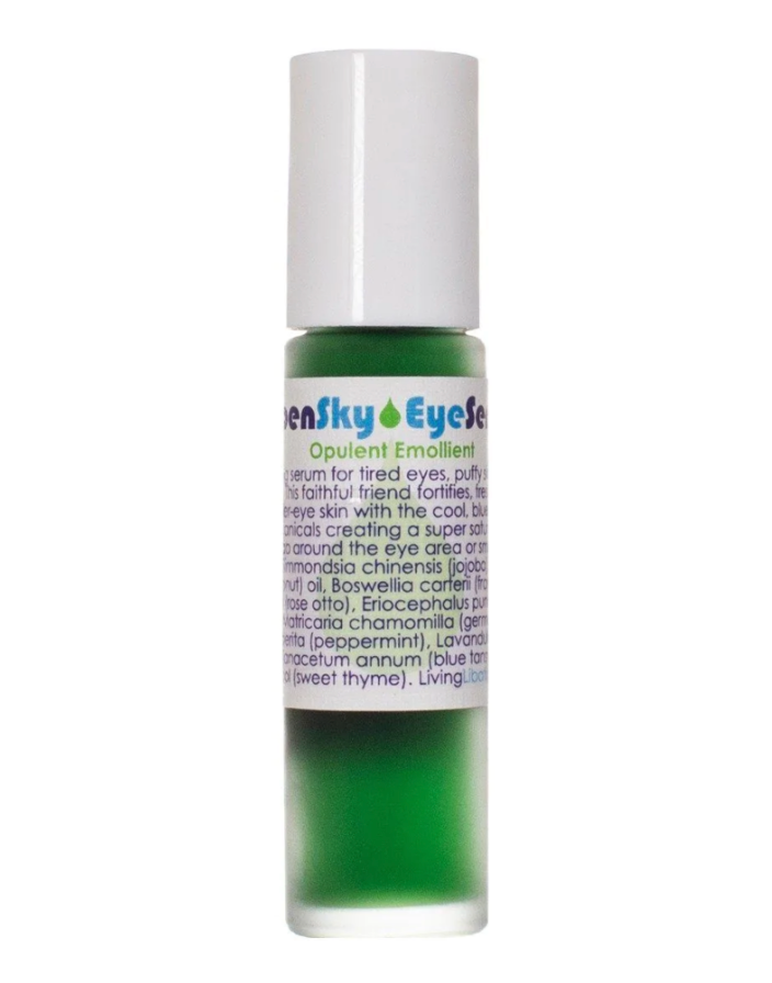This effective eye serum uses blue tansy, peppermint and rose otto to reduce puffiness in skin, rose otto oil, chamomile and frankincense to eliminate dark circles and jojoba to heal dry skin.