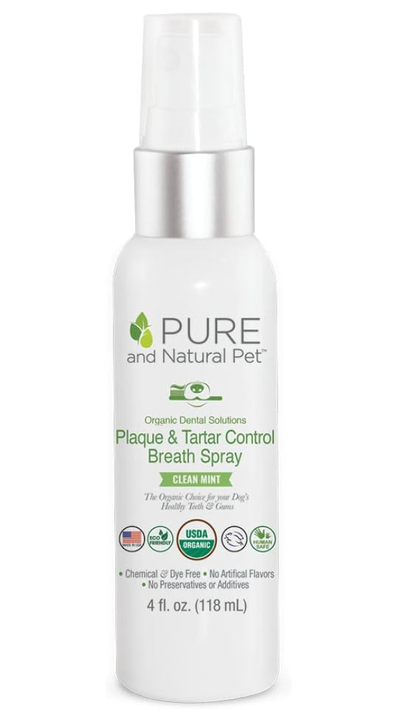 Freshen breath naturally while reducing plaque and tartar with this organic, clean mint, breath spray. Apply 1-2 sprays in mouth. Repeat if needed. Helps Freshen Breath, Remove Tartar and Fight Plaque.