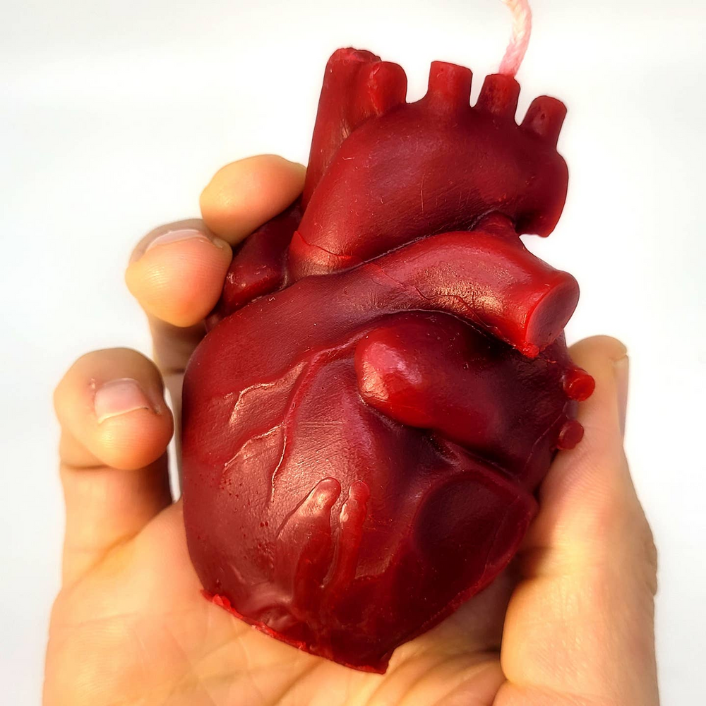 Be careful who give your heart to. Luckily, this one's in safe hands. Anatomical Heart beeswax candle! The Anatomical Heart measures 3.75" x 3" x 2" and weighs 4 oz.