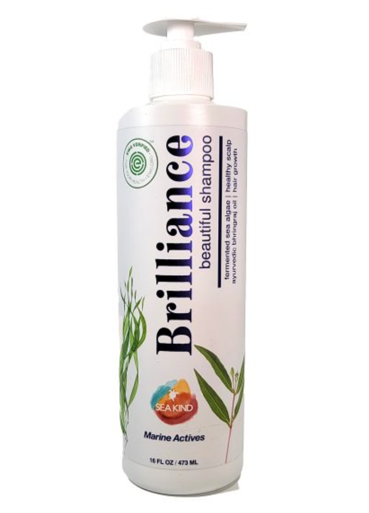 Sea Kind innovation creates Brilliance Beautiful Shampoo with the unique, patent pending, combination of Marine Actives fermented sea algae and organic Ayurvedic Bhringraj Oil. The result is a Beautiful Shampoo with amazingly beneficial properties. This Amazing shampoo is perfect for all hair types and conditions.