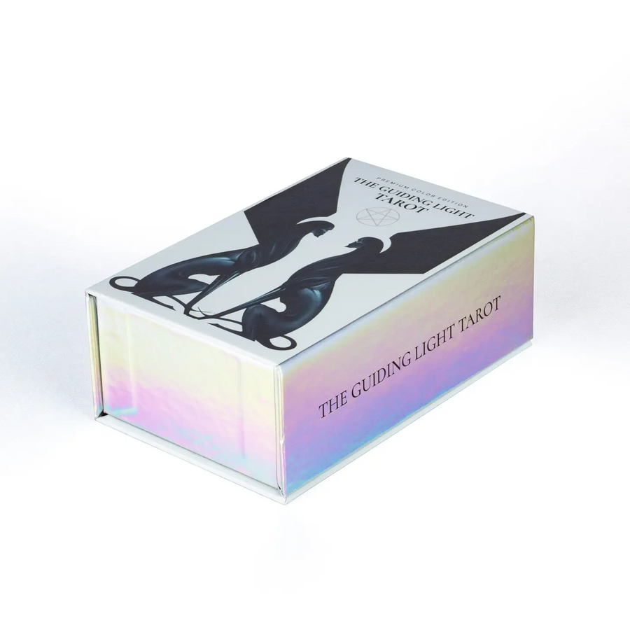 The Guiding Light Tarot, Premium Color Edition, is a set of 78 cards that invites you to look deep into yourself, exploring your mind and soul. Inspired by the way light casts shadows on figures and objects, and accented with color, these cards reveal the potent imagination of artist Victoria Iva. She has created an intense deck that interprets the themes of inner purity, emotional struggle, spiritual strength, and soulful growth through her otherworldly representation for each card.