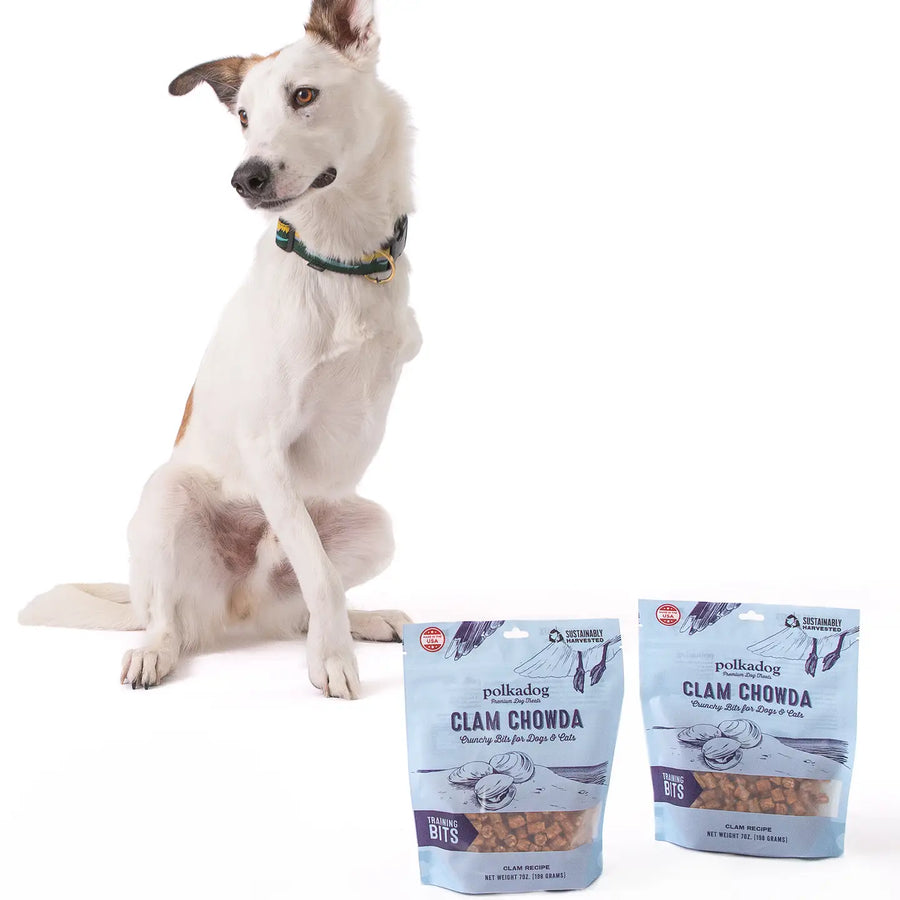 Perfectly sized for training, our new Clam Chowda Bits are light and crunchy, rich in omega fatty acids, easily digestible, only 4 ingredients!